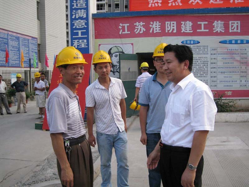 7月15日,刘友超副市长在市住建局王守祥副局长、市政府办程永清副主任和集团许金华董事长的陪同下,来到集团宝鸡分公司国际商业广场项目工地视察。在工地现场,刘友超副市长亲切慰问了集团在宝鸡的施工人员,并深入施工现场详细询问工程概况、施工进度,宝鸡市建筑主管部门对工程质量、安全生产、文明施工的要求,管理流程和验收标准、方法。在现场察看过程中,当得知该项目被宝鸡市城乡建设规划局作为优质施工工程项目进行经验介绍时,刘市长要求项目部:第一,把淮安建筑业好的经验,把淮建集团好的管理带到宝鸡来,让宝鸡人民了解淮安建筑业的水平,打出淮建集团的品牌。第二,把宝鸡好的管理方法带回去,不断完善自我,充实自我,提升品质,再上一个新台阶。