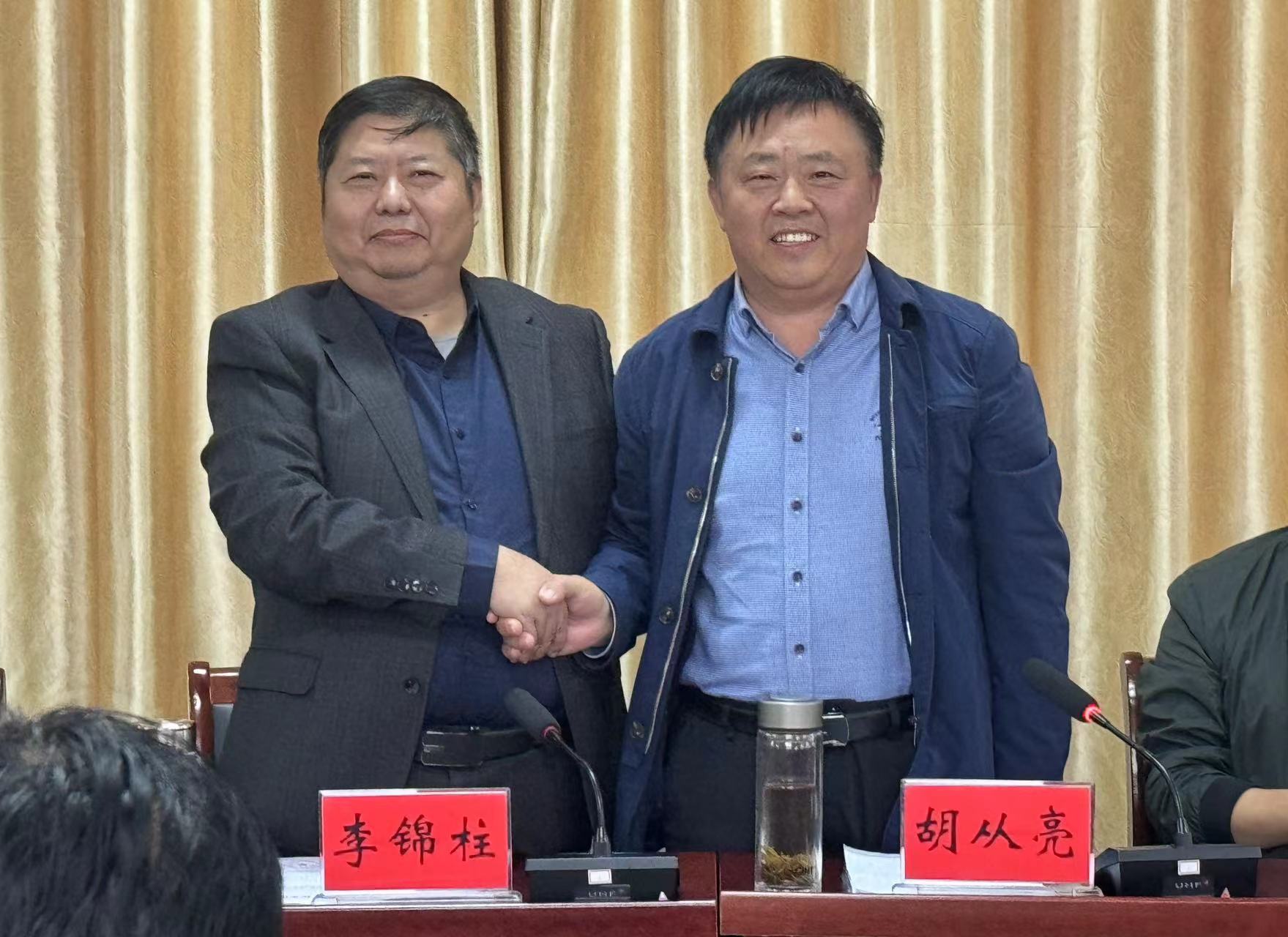 前任董事长胡从亮(右)与现任董事长李锦柱(左)