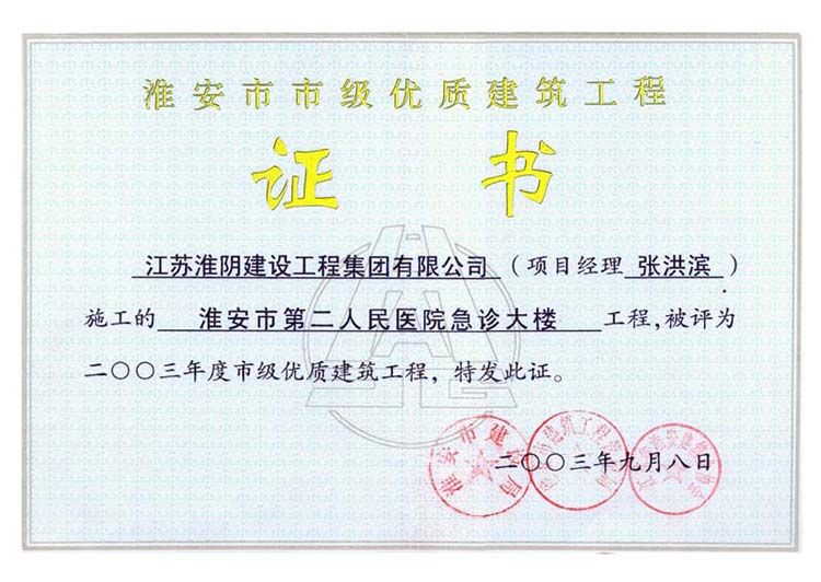2003年市级优质工程淮安市第二人民医院急诊大楼(张洪滨)