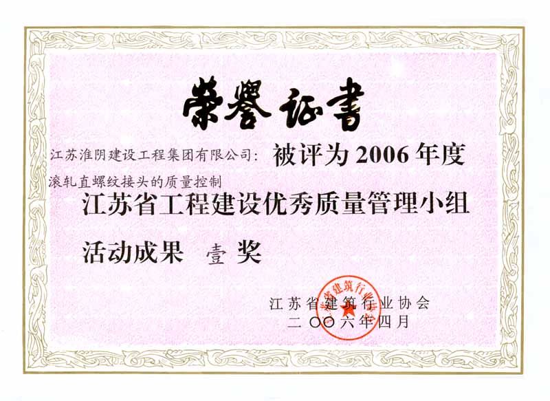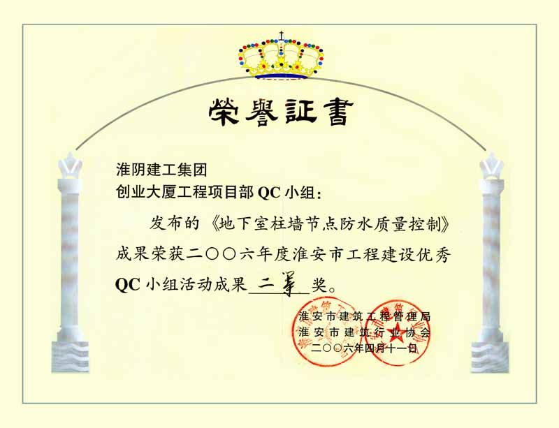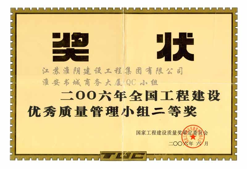 2006年全国工程建设优秀质量管理小组二等奖-书城