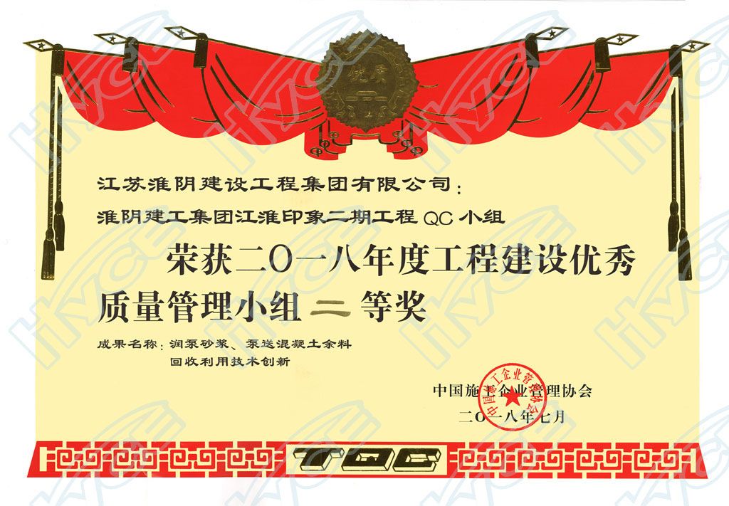 2018年度工程建设优秀质量管理小组二等奖